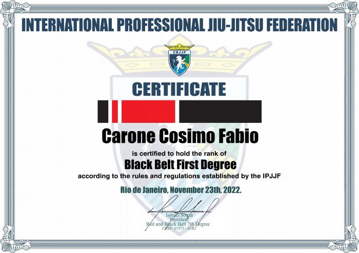 Certificate IPJJF Faixa Preta 1° Grau