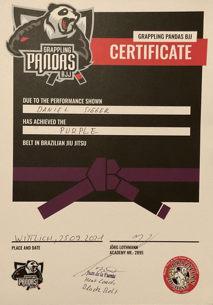 ![]() | Juan De La Fuente Briones Grappling Pandas Wittlich Wittlich, Germany Black belt 1st degree |