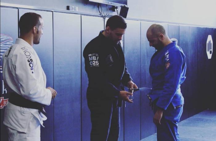 Mi graduación Blue Belt con Sergio Calderon y José Eyo el 14 de Abril del 2018.