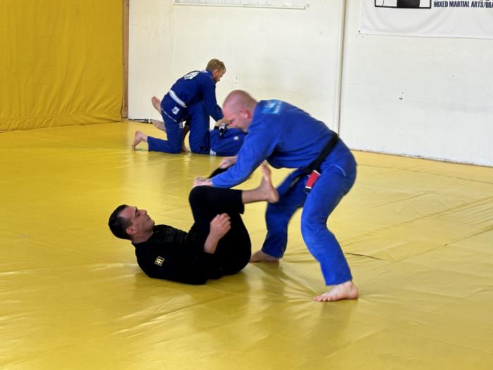 "Spar with Pierre every week. He is a tough opponent and well on his way in his jiu jitsu Journey. Also a Great coach for the kids, setting an excellent role model. "