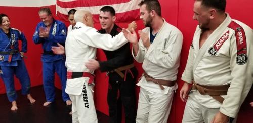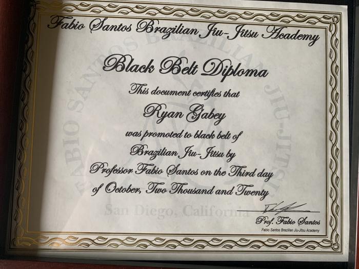 I was eligible for my First Degree in October 2023, however at the time I was working overseas in Japan until recently. I chose to wait until returning back to my home academy for Professor Fabio Santos to promote me to First Degree Black Belt. Photo Screenshots are below, and a video of the promotion can be found on my Instagram Link. https://www.instagram.com[...]BiNWFlZA==