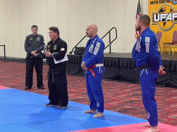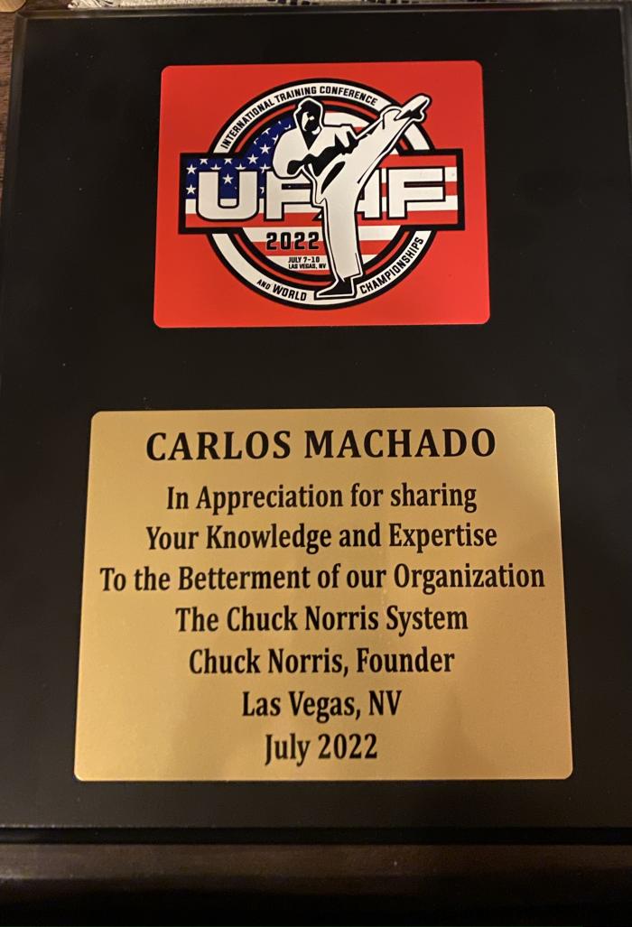 Time goes so fast! Grand Master Francisco Mansur is a 9th degree Red Belt who signed off on awarding this belt to me. Grand Master Mansur was supposed to be there in person; unfortunately, he became hospitalized because of COVID-19 in Brazil and was unable to attend. With his blessing, I had my family and some of my first ever Black Belts tie the Red & White Coral Belt on me! You can watch the video on my youtube channel.