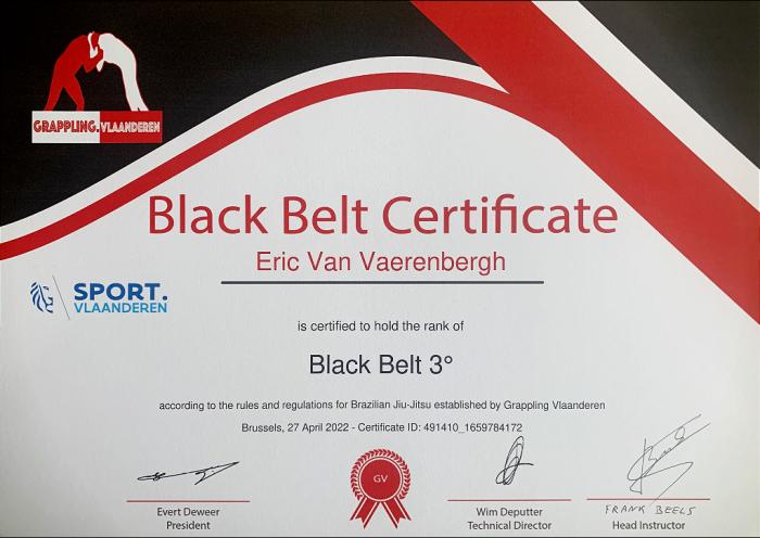 Lineage: Kanō Jigorō > Mitsuyo Maeda > Carlos Gracie > Helio Gracie > Flavio Behring > Mario D'Hoker > Eric Van Vaerenbergh