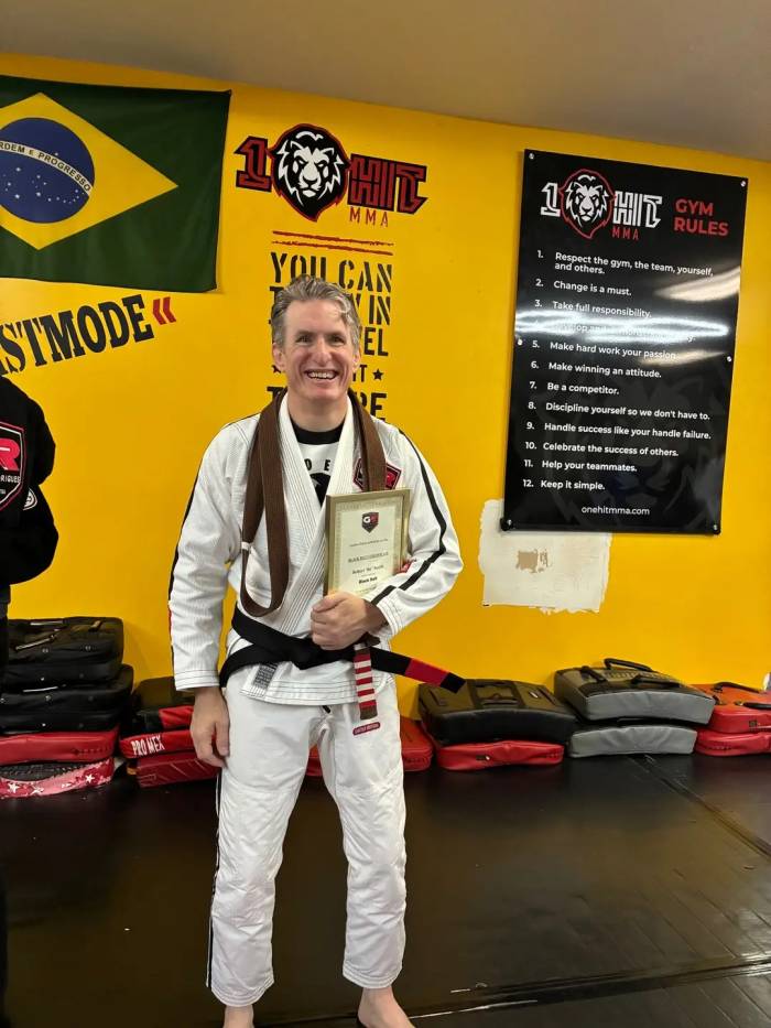 I was promoted to Brown Belt on December 13, 2014 by Gustavo Muggiati at Gracie Barra North Orlando.