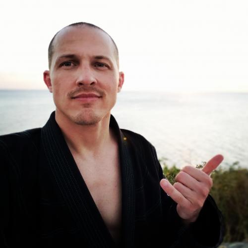 A BJJ Black Belt under Priit Mihkelson, from Stafford England. One of the initial Globetrotter gyms.
