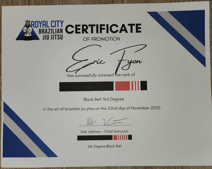 Lineage: Helio Gracie>Royler Gracie>David Adiv>Sylvain Moroney>Rob Veltman
