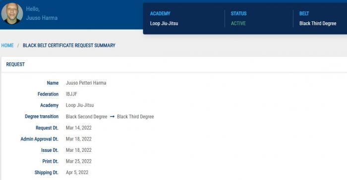 Black belt 3rd degree verification progress
