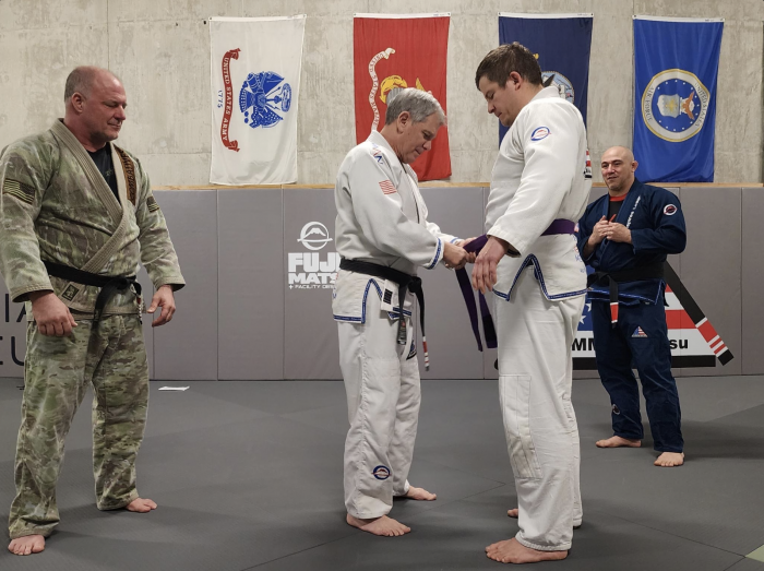 "One of our purple belts. Promoted by Professor Ferriter "