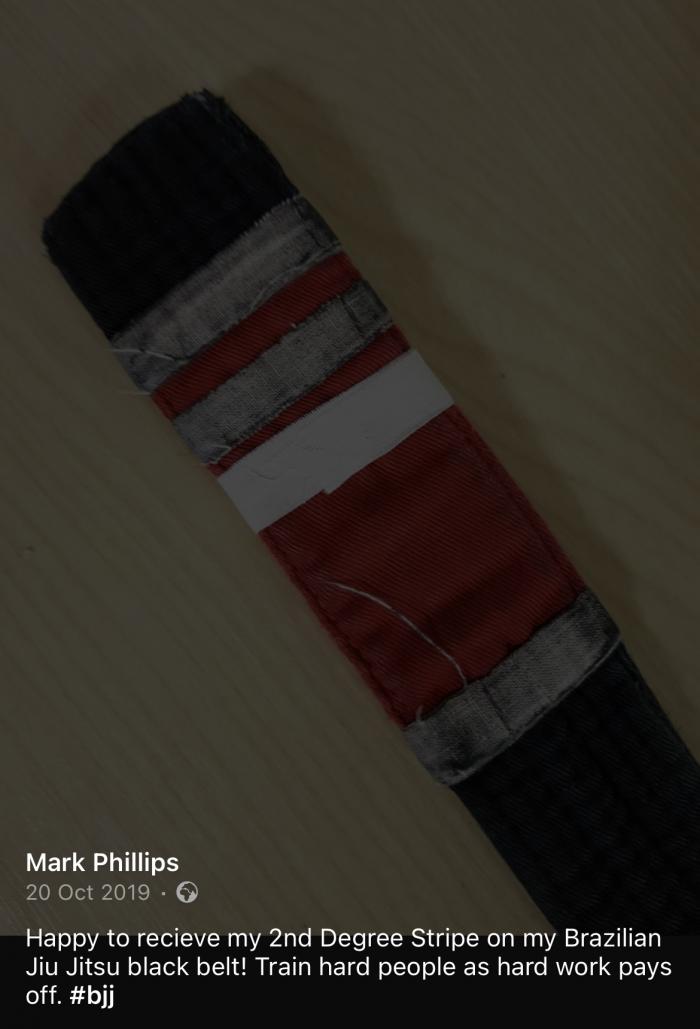 "Professor Mark Phillips, is the person who gave me my belts and I have trained under him for almost 5 years now and was there when he was promoted to 3rd Degree Black Belt By his Professor Marc Walder."