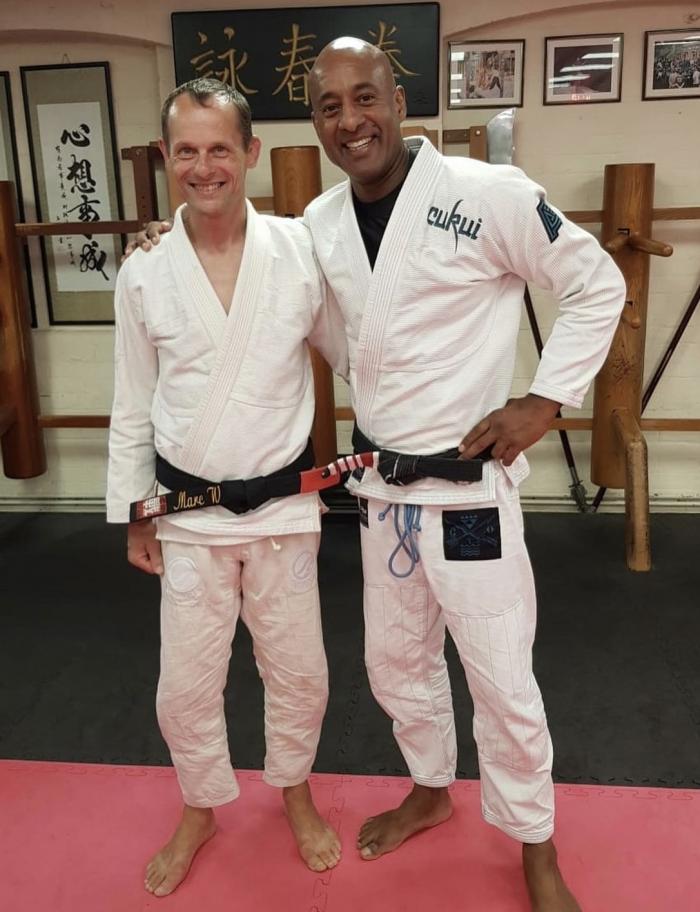 "Mark is a 100% legit black belt, and an amazing guy all around. Have taught at his academy, and have enjoyed his company at other seminars as well, including Emily Kwok in London last year. I vouche for him "