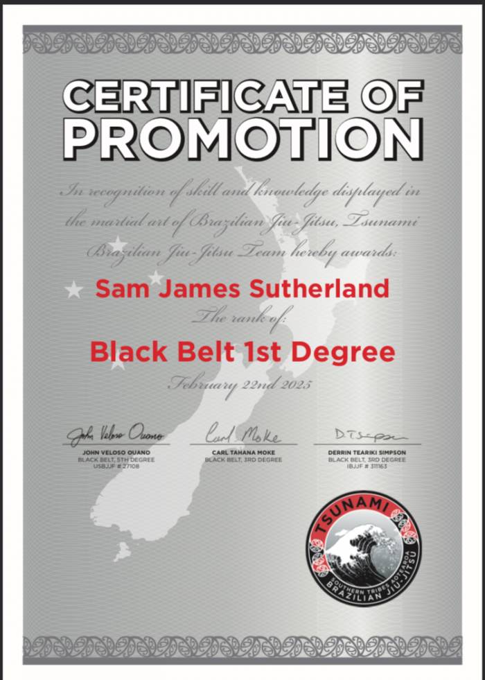 ![]() | Pina Simpson Tsunami Brazilian Jiu-Jitsu Kaimiro, New Zealand Black belt 3rd degree |