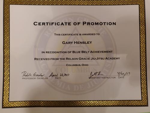 Lineage: Kano Jigoro > Tomita Tsunejiro > Mitsuyo "Count Koma" Maeda > Carlos Gracie, Sr > Helio Gracie > Rolls Gracie > Romero Cavalcanti > Michael Ferriter > Gary Hensley