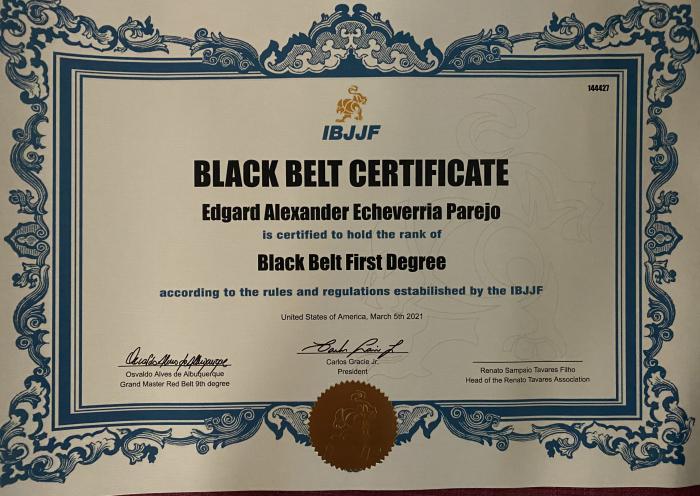 Lineage: Mitsuyo Maeda > Carlos Gracie > Carlson Gracie > Renato Tavares > Edgard Echeverría